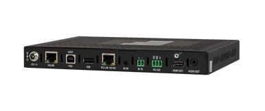 | Back Connectors | Local Power: 2.1mm DC Power Jack; DXLink Port: RJ-45; USB Host Port: USB Type B; USB Device Port: USB Type A; ICSLAN/Ethernet Port: RJ-45; IR-RX Port: 3.5mm Mini Mono Jack; IR-TX Port: 2-pin Phoenix; Serial Port: 3-pin Phoenix; HDMI Out: HDMI Type A Female; Analog Stereo Output: 3.5mm Mini-Stereo Jack |