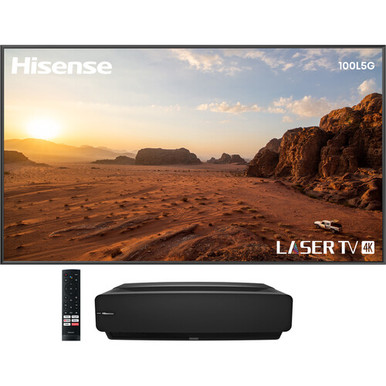 Hisense CINE100A Overview Achieve a full home theater experience with the Hisense L5G 2700-Lumen XPR 4K UHD Smart Ultra-Short Throw Laser DLP Projector 100 Screen Bundle. This system includes a DLP projector with a laser light source that outputs up to 2700 lumens of brightness for use under a variety of lighting conditions, and HDR compatibility helps provide vibrant, lifelike color when paired with compatible...