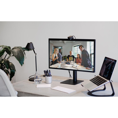 The Huddly GO is designed as a portable on-the-go solution that can quickly be set up in small- to medium-sized meeting spaces and home offices where multiple people work together. Attaching directly to the edge of your monitor or TV via a built-in hinge, it captures an ultra-wide 150° angle of view in 720p30 HD resolution, fitting everyone in the shot in crisp, high detail. The Huddly GO works by simple plug-and-play USB connection to your computer and uses your computer’s mic, to provide a complete video and audio solution. It can be used with virtually any popular conferencing platform, such as Zoom, Teams, Skype, and Google Hangouts. A USB cable is also included to get you started right out of the box.