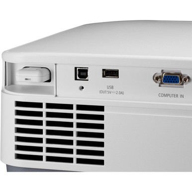 The NP-P525WL has HDBaseT, VGA, and two HDMI inputs to support various input types, plus an analog audio input and built-in 20W speaker that will provide audio for your video. The 1.23 to 2:1 throw ratio and 1.6x zoom allow you to place the projector near the back of the room in most cases. It is controllable via Ethernet, RS-232, the included IR remote control, or Crestron RoomView software.
