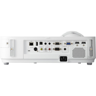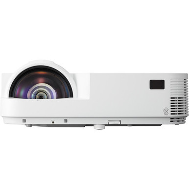 The NEC NP-M332XS is a portable short throw DLP projector designed for education, training rooms, and small business applications. With a brightness rating of 3300 ANSI lumens and XGA native resolution (1024 x 768), it produces clear and legible images in environments with ambient light. Its short throw ratio allows large images to be projected from a short distance, reducing shadows and increasing placement flexibility. The projector features multiple connectivity options including HDMI, VGA, and composite video, along with an integrated 20W speaker to support multimedia presentations. Advanced features such as auto power-on, ECO Mode™, and remote management enhance operational efficiency.