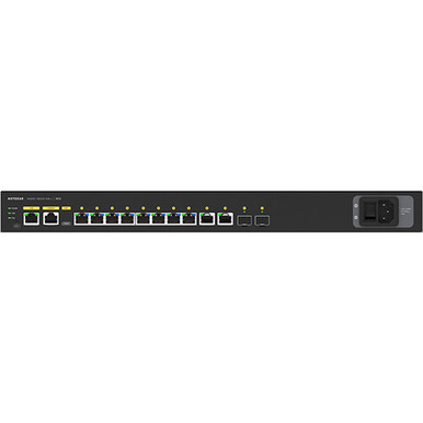 Designed with input from industry professionals, the AV Line M4250 GSM4212UX 8-Port Gigabit PoE++ Compliant Managed AV Switch from Netgear is engineered for 1G AV over IP. Enjoy eight rear-facing 60W PoE++ compliant RJ45 ports with a 720W power budget and two 10G SFP+ uplink slots that ensure a clean integration in AV racks and pre-configuration for out-of-the-box functionality.
