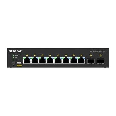 Netgear GSM4210PX M4250-8G2XF-PoE+ AV Line 8x1G PoE+ 220W and 2xSFP+ Managed Desktop Switch The NETGEAR AVLine M4250 series was designed with input from AV Professionals. The result is a line of switches built from the ground upto support 1Gb audio and video over IP with customized hardware and software along with dedicated service and support.