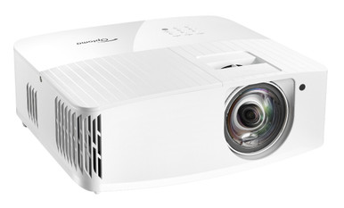 Discover the short throw version of the 4K400x, for when you want a big screen in a smaller space: the Optoma 4K400STx, a cinematic projector with built-in speakers, 4K UHD and Optoma technology.