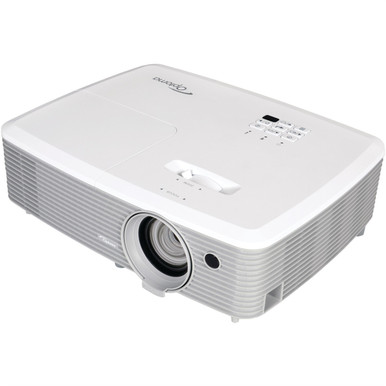 The Optoma EH400+ is a high-brightness 1080p DLP projector designed for business and education environments that require sharp detail and vibrant color performance. With a brightness rating of 4,000 ANSI lumens and a native resolution of Full HD 1920 x 1080, the EH400+ ensures clear visuals even in rooms with high ambient light.