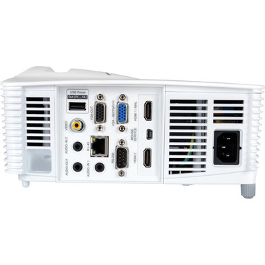 The Optoma W416 is a professional-grade WXGA DLP projector engineered for business, education, and professional presentation environments. Delivering 4500 ANSI lumens and a 20,000:1 contrast ratio, it ensures crisp, detailed images even in rooms with significant ambient light. Its native WXGA (1280 x 800) resolution supports widescreen content, while Full 3D compatibility via HDMI 1.4a allows integration with 3D sources such as Blu-ray players and PCs. The W416 includes vertical and horizontal keystone correction, a 1.6x zoom lens, and a built-in 10W speaker. With extensive connectivity options including two HDMI inputs, VGA, composite video, USB-A (for wireless dongles or power), and RS-232, the W416 is built to support a wide range of devices and configurations.