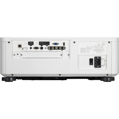 The white PX1004UL 10,000-Lumen Professional Installation Projector from NEC is a powerful projector with a laser/phosphor light source. It comes with many features like stacking correction, edge blending, geometric correction, and more. The stacking correction capability allows up to four projectors to boost an image’s brightness up to 40,000 lumens, which is suitable for larger-sized screens and environments with heavy ambient light. This feature also prevents the complete loss of image which can happen when using only one projector. The edge blending function seamlessly blends multiple projected images to display a single high-resolution image.
