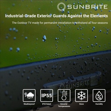 SunBrite sensitive internal components are enclosed in powder-coated rust-proof aluminum exterior for protection from rain, snow, dust, insects, humidity, and salt air. Plus, the innovative weather-tight cable entry system seals out moisture and allows for easy hook-ups.