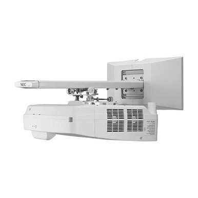 NEC s UM352W-WK is a bundle solution that ships with the UM352W projector and a custom wall mount (NP04WK1). The projector is a bright 3500 lumens and provides a complete interactive solution with built-in whiteboarding, advanced collaboration capabilities, auto set-up and content delivery over wired or wireless LAN.
