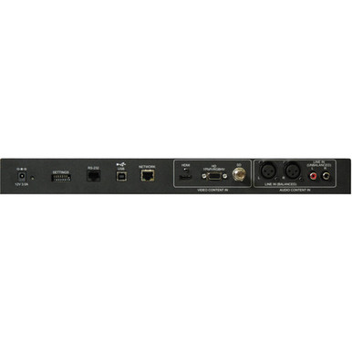 The AV Bridge can support switchable balanced or unbalanced audio — and switchable HDMI, RGBHV, SD or HD component video inputs. Video inputs can be up or down converted as required. Outputs include USB 2.0 with HD UVC/UAC device support – or an Ethernet network interface for both IP control and streaming, supporting RTSP and HLS streaming clients.